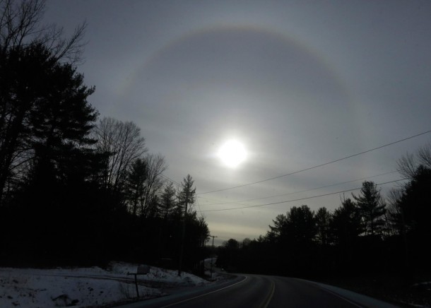 Солнечное гало в небе над Фортом Энн, Нью-Йорк, США