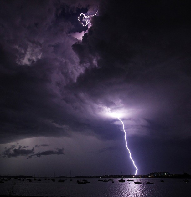 Гроза во время шторма в заливе Дорчестер, Бостон
