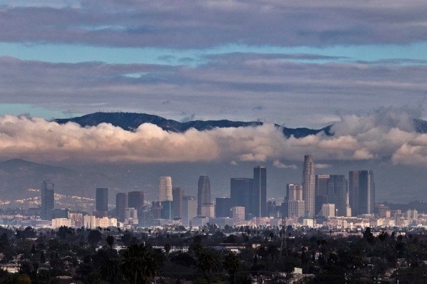 Движущиеся с горы Сан-Габриель на Лос-Анджелес облака, США