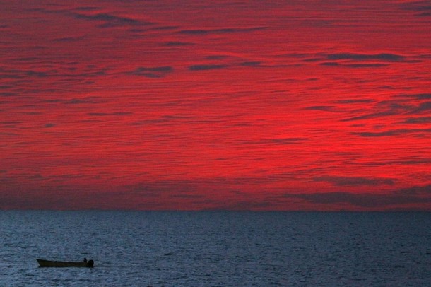 Рыбацкая лодка на закате в Масалтане, Мексика