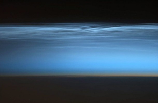 Серебристые облака над Землей. Фотография сделана с борта Международной космической станции астронавтом Крисом Хадфилдом