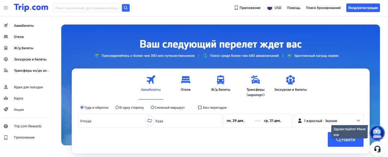 Trip.com — это международный гигант туристической индустрии, работающий в 39 странах и предлагающий бронирование на 24 языках. Платформа поддерживает 35 валют и охватывает более 1,7 миллиона объектов размещения, а также рейсы от 600 авиакомпаний, обслуживающих 3 400 аэропортов в 220 странах. Это не просто поиск: сервис обеспечивает круглосуточную поддержку клиентов благодаря глобальной сети центров, включая Эдинбург, Токио и Сеул.