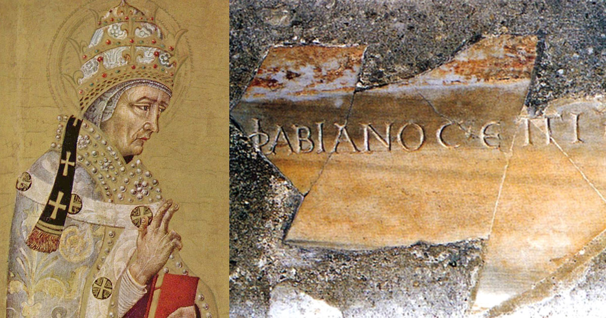 В 236 году, после смерти папы римского Антера, на выборы его преемника приехал Фабиан — простой христианин из провинции. Во время обсуждения кандидатур на него неожиданно сел голубь, это сочли божественным знаком, и Фабиана сразу избрали епископом. Он возглавлял церковь до 250 года, когда был казнён по приказу императора Деция Траяна, возобновившего гонения на христиан.