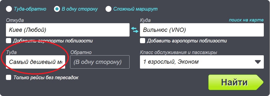 …то поисковик покажет самые дешевые рейсы из всех городов.
