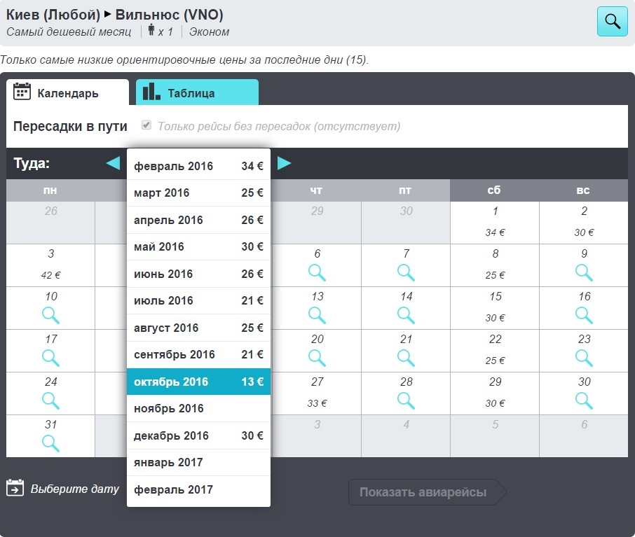 Чем гибче вы в датах вылета, тем дешевле билет. Отличие в один день может стоить 100 евро, поэтому хорошо иметь возможность увидеть Самую дешевую дату.
