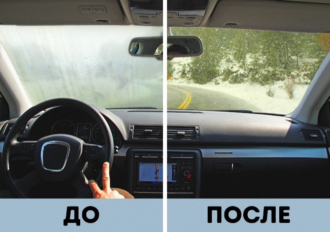 А чтобы быстро избавиться от наледи, можно смешать уксус и воду в пропорции 3 к 1 и распылить на стекло.