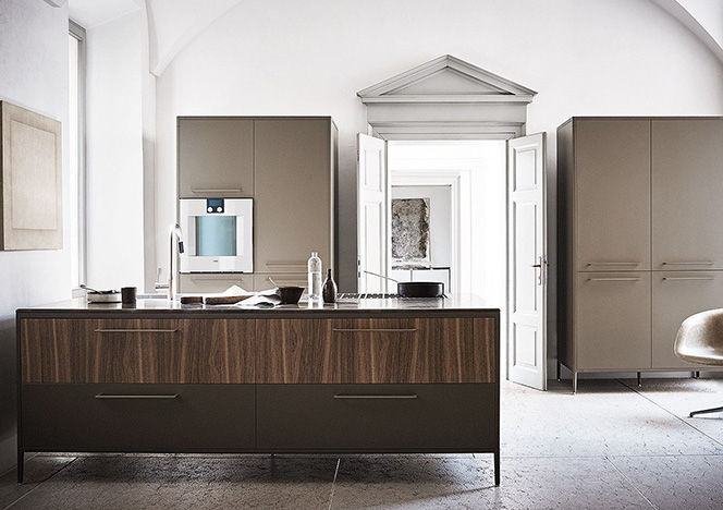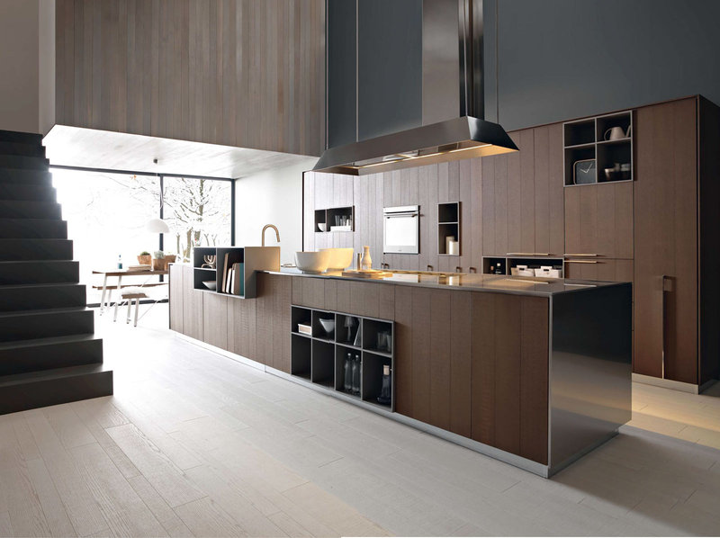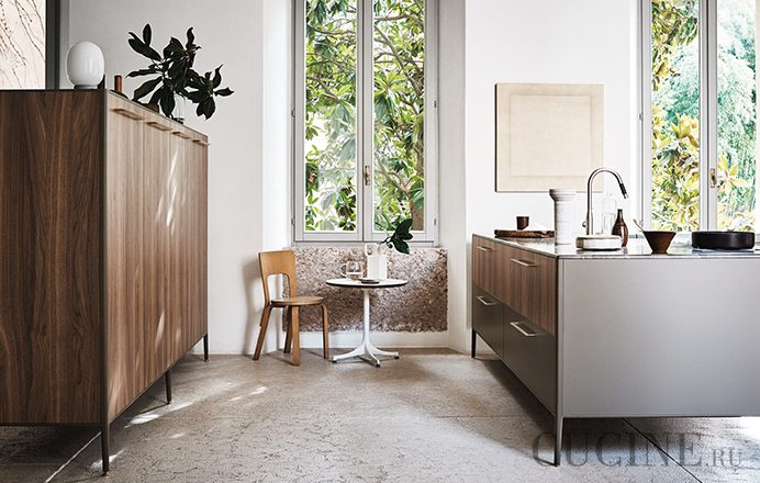 Unit это динамичная и легкая кухонная система проекта, свободная от ограничений стенами. Великолепный союз профессионализма и домашнего тепла, технологии и традиций.