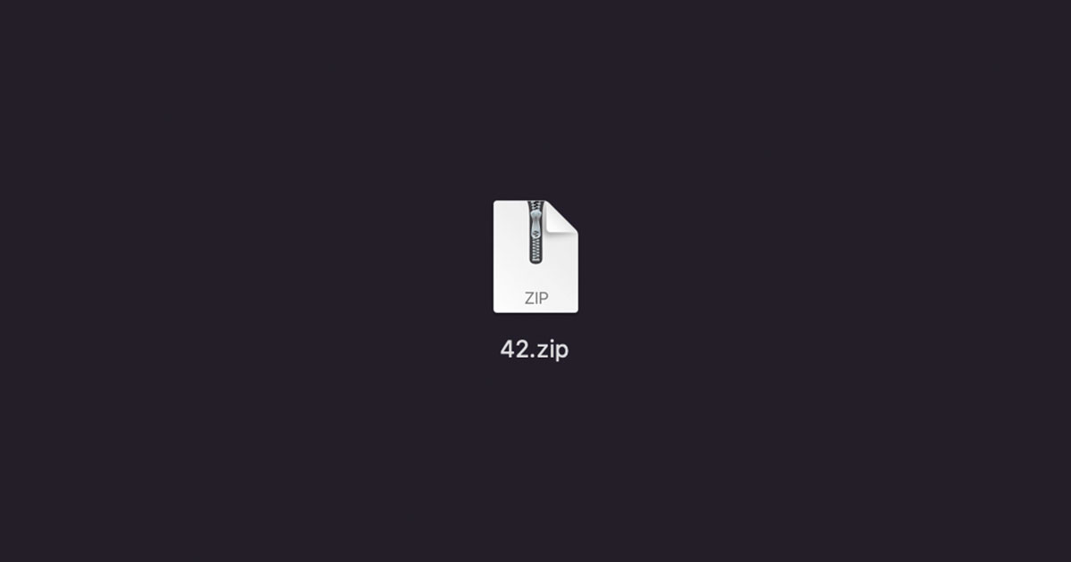 Самый известный пример — 42.zip: сам файл весит всего 42 КБ, но внутри скрыта цепочка вложенных архивов (5 уровней по 16 файлов). В результате при распаковке объём данных вырастает до примерно 4,5 петабайт.