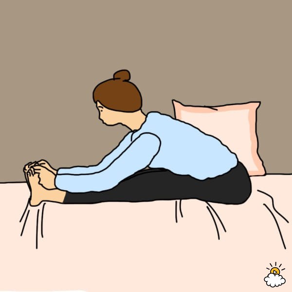 Наклон вперед — прекрасное средство, если вы хотите полностью растянуться перед сном. Сядьте на кровати и медленно наклонитесь вперед, а затем осторожно достигните пальцами рук пальцев ног. Если вы не дотягиваетесь до ног, дотянитесь до своих лодыжек, голени или бедра — куда сможете. Сфокусируйтесь на выдохе, так как это поможет вам углубить растяжку.