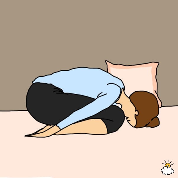 Колени на кровати, пальцы ног вместе позади вас, а колени на ширине плеч. Медленно наклоняйтесь вниз, пока не окажетесь между бедер. Задержитесь в этом положении до тех пор, пока чувствуете себя комфортно, дышите глубоко.