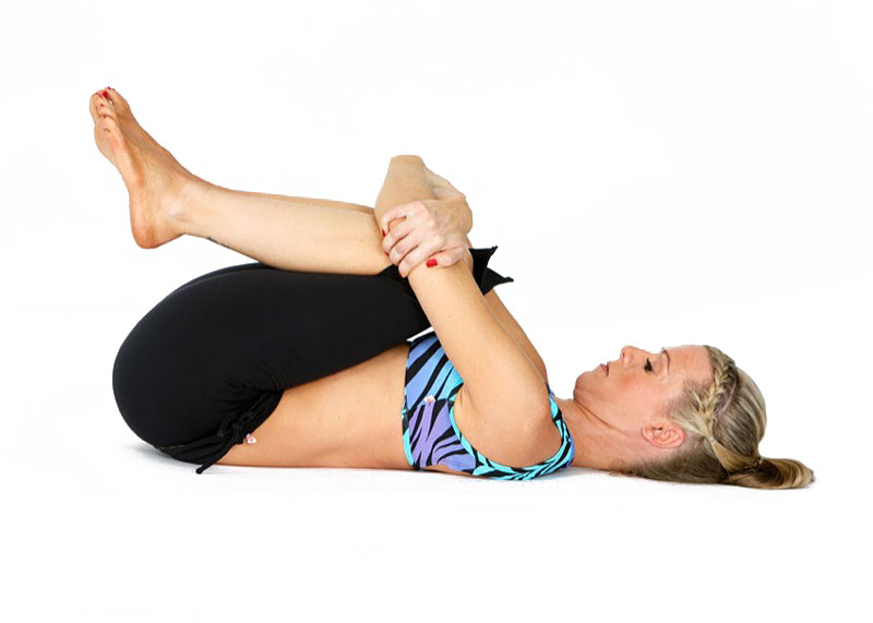 - Согнуть ноги в коленях и придвинуть ноги как можно ближе к ягодицам и направить колени к груди.