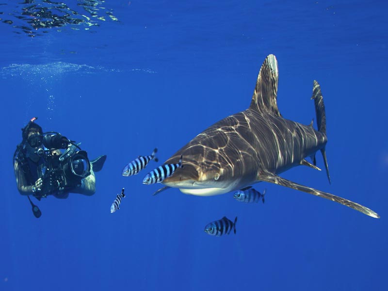 - В специализированных местах, таких как дайвинг-центры, предоставляющие возможность поплавать с акулами, следует тщательно выполнять все инструкции руководителей.