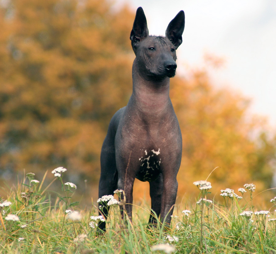 Ксолоитцкуинтли, также известная как Мексиканская голая собака. Её история длинная и увлекательная. Она уходит на 3500 лет назад к ацтекам и майя, которые считали, что такая порода защищает дом от злых духов, а также злоумышленников.