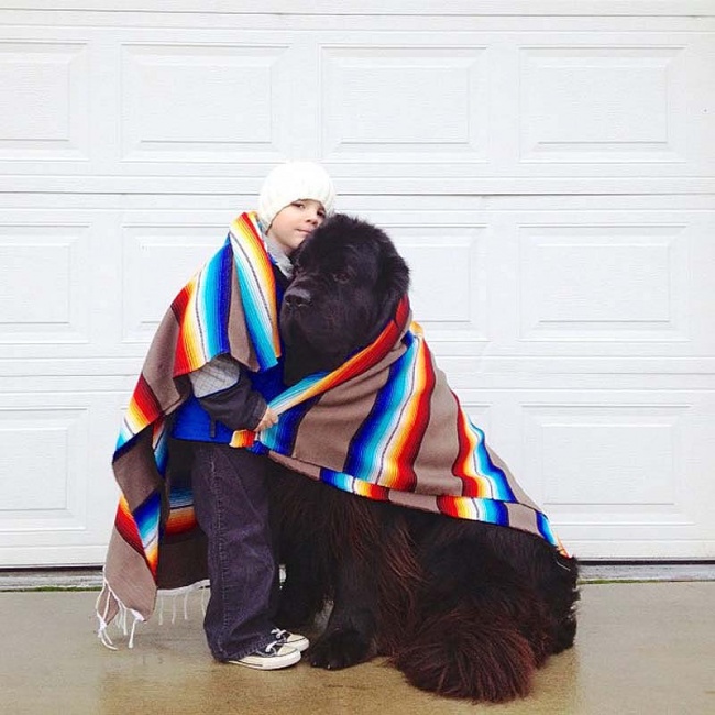 4-летний Джулиан и его огромный друг 5-летний ньюфаундленд Макс растут вместе