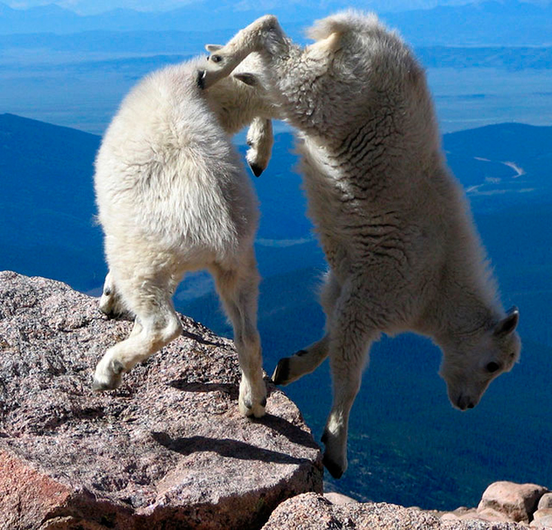 Фактрум предлагает вниманию читателя головокружительные фотографии прогуливающихся по скалам горных козлов.