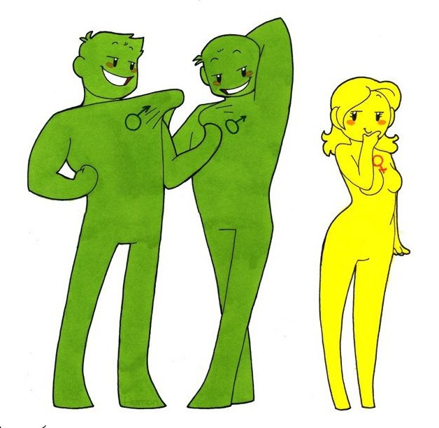 И наконец, есть тип самцов, которые внешне похожи на самок. Они так же, как и подчиненные самцы не имеют своей территории и тайком спариваются с самками, но также с радостью позволяют другим самцам спариваться с собой, занимая в таких случаях позицию самки. Изначально считалось, что другие самцы при спаривании с ними по ошибке принимают их за самок, но дальнейшие исследования показали, самцы прекрасно понимают, что перед ними самцы. Сильные территориальные самцы пускают их на свою территорию, поскольку высокий процент гомосексуальной активности привлекает как самцов, так и самок. Самкообразные самцы обычно проводят лето с самками, а зиму с самцами.