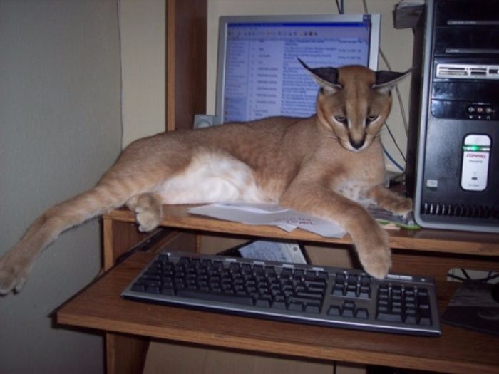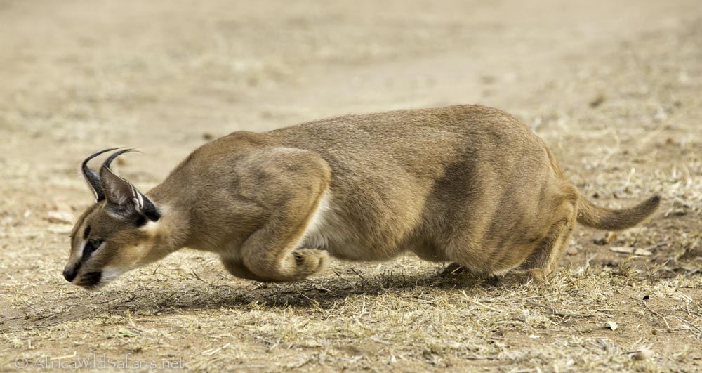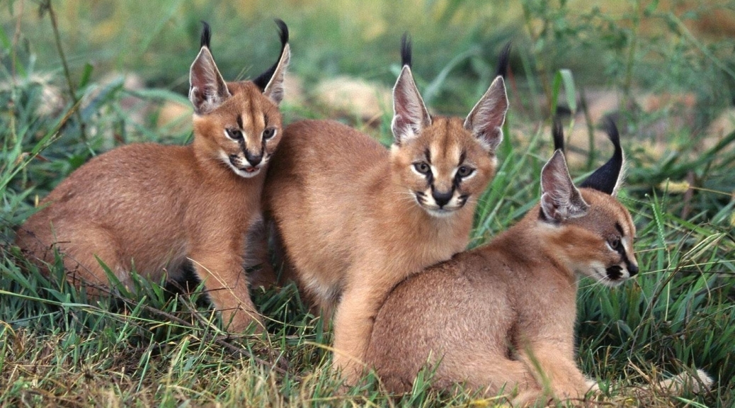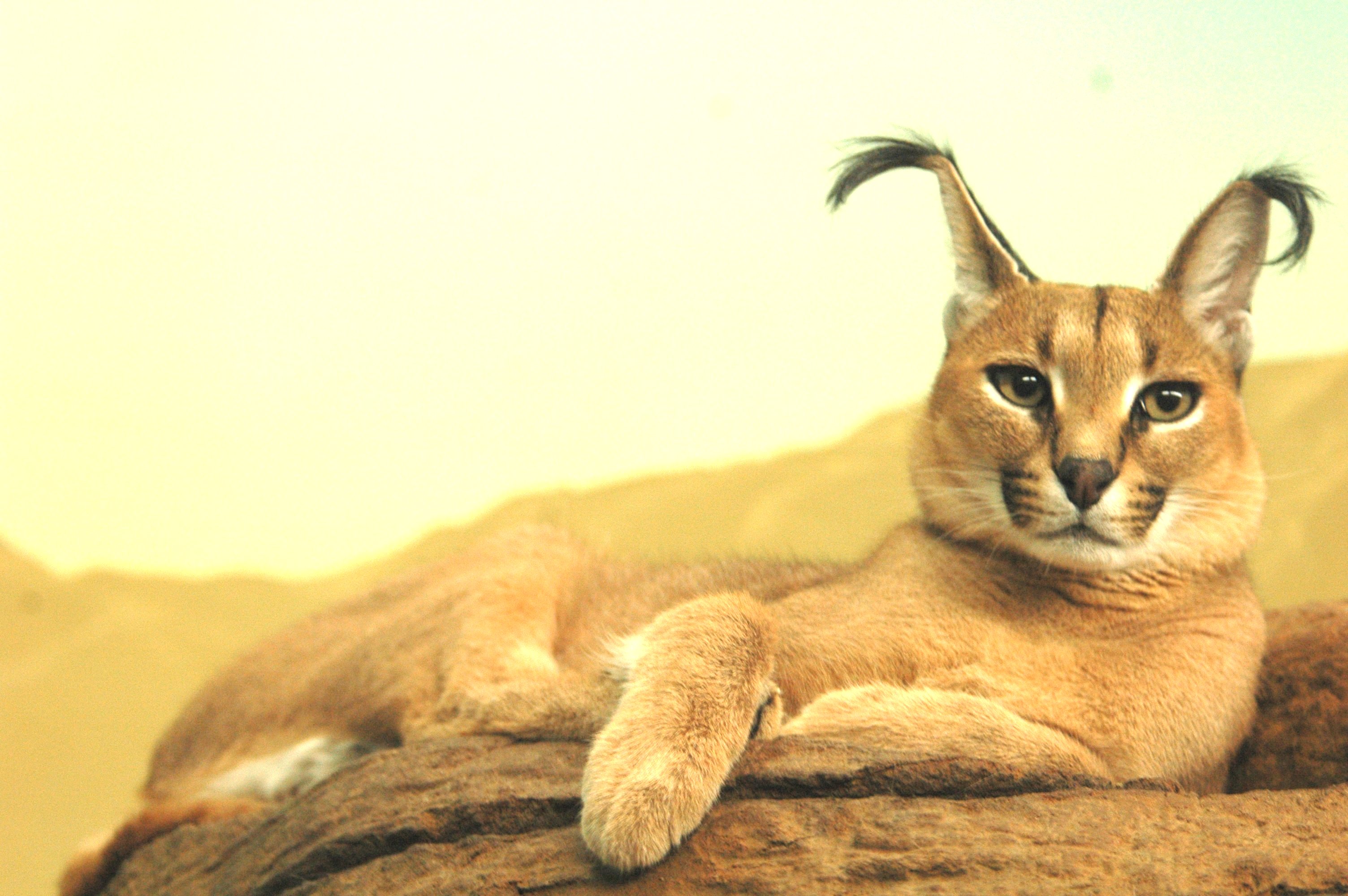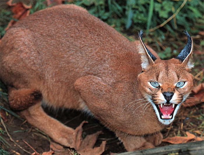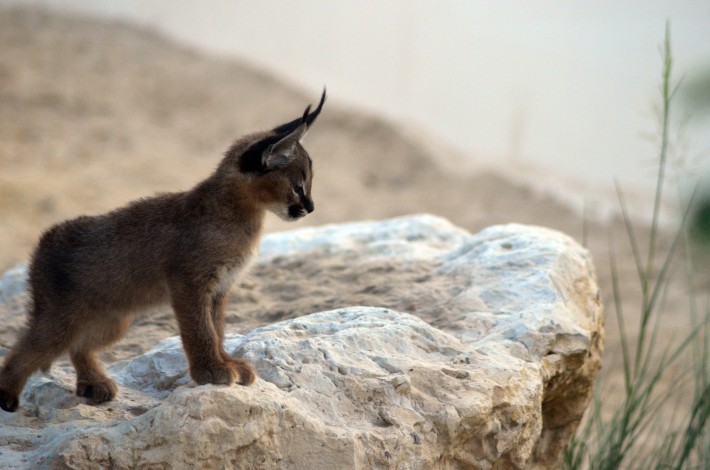 Каракал — пустынная кошка, родственник рыси, что можно понять по развесистым кисточкам на ушах.