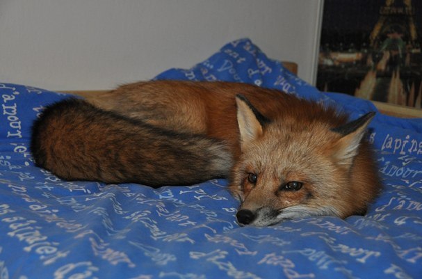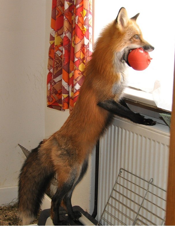 Теперь лиса живет в доме своего спасителя и радует его своими забавными выходками