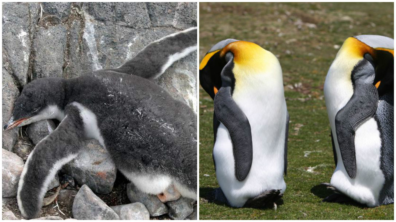 Как и в случае с лошадьми, бытует миф, что пингвины спят стоя. Это, конечно, не так, во всяком случае, не совсем так. Во-первых: пингвинов на Земле существует несколько видов и многие из-них спят по-разному. Вот, например, папуанские пингвины и некоторые другие спят так, как будто у них вчера была неслабая вечеринка. Ну, просто без задних лап.