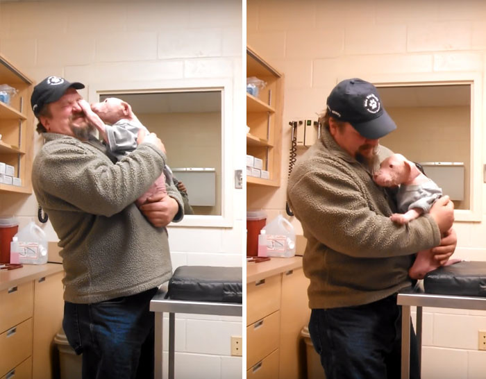 Когда Вагнер вернулся в больницу, щенок настолько обрадовался, что прыгнул прямо к нему на руки и начал вылизывать ему лицо