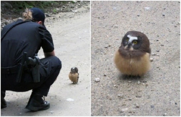 Во время патрулирования помощники шерифа из округа Боулдер наткнулись на совенка, который сидел прямо на проезжей части. Он перегородил дорогу машине, поэтому сотруднику полиции пришлось выйти и пообщаться с «нарушителем».