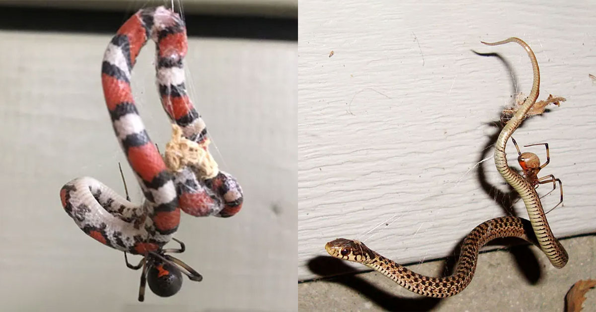 Пауки иногда охотятся на добычу, которая может быть больше их в десятки раз — в том числе на змей. Так, австралийская вдова размером всего около сантиметра способна поймать в сеть и убить ядом молодую восточную коричневую змею — одну из самых ядовитых в мире.