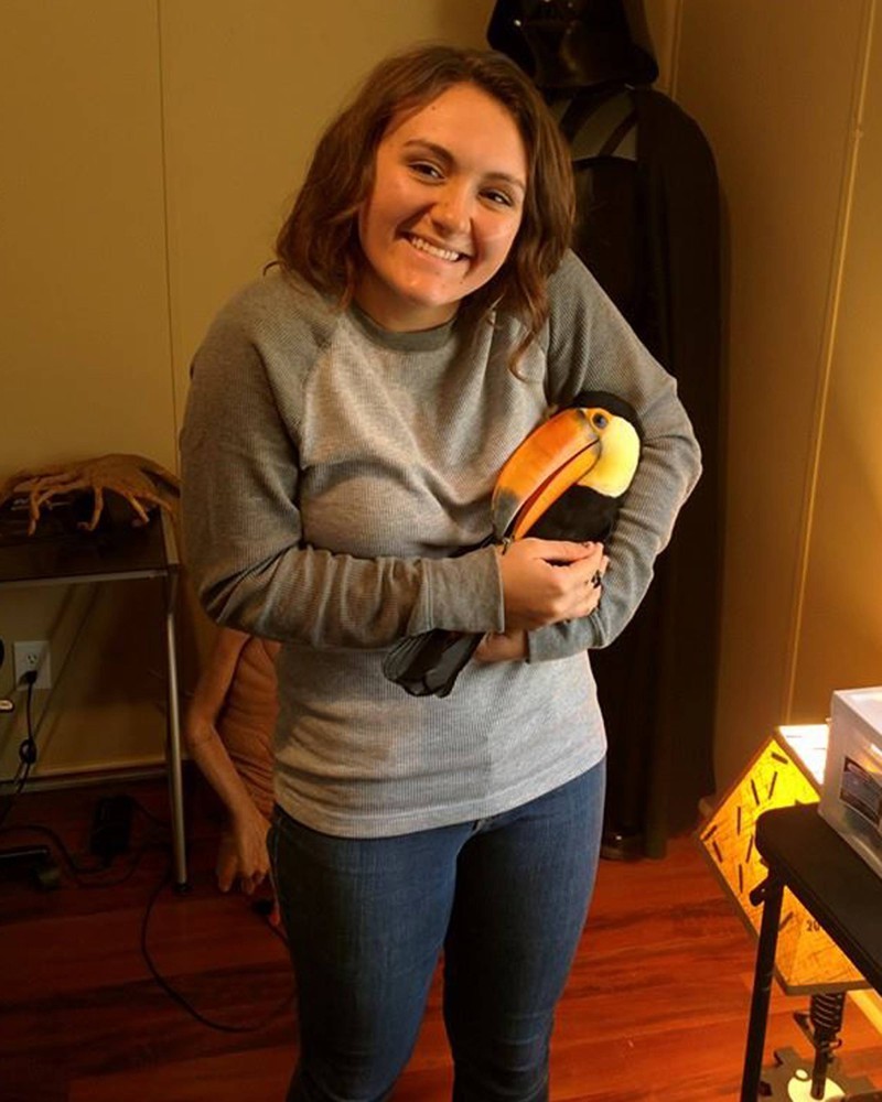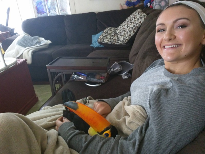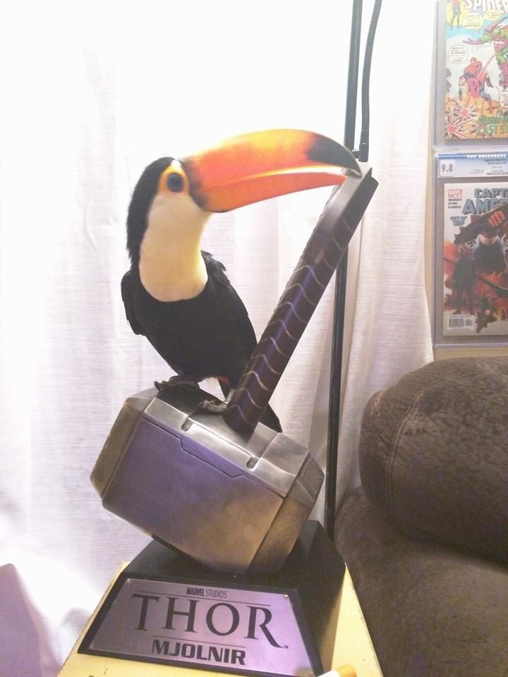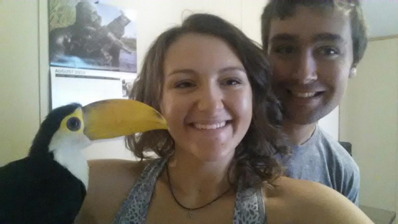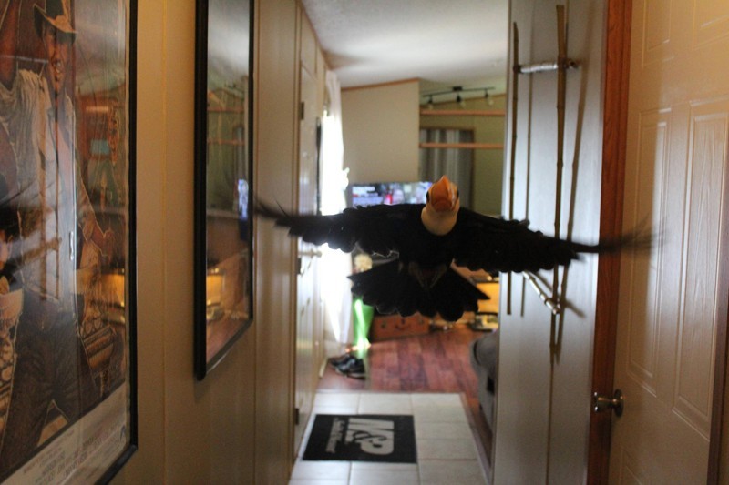 Конечно, она веселая и очень своеобразная птица, и любит принимать участие в хобби своих родителей…