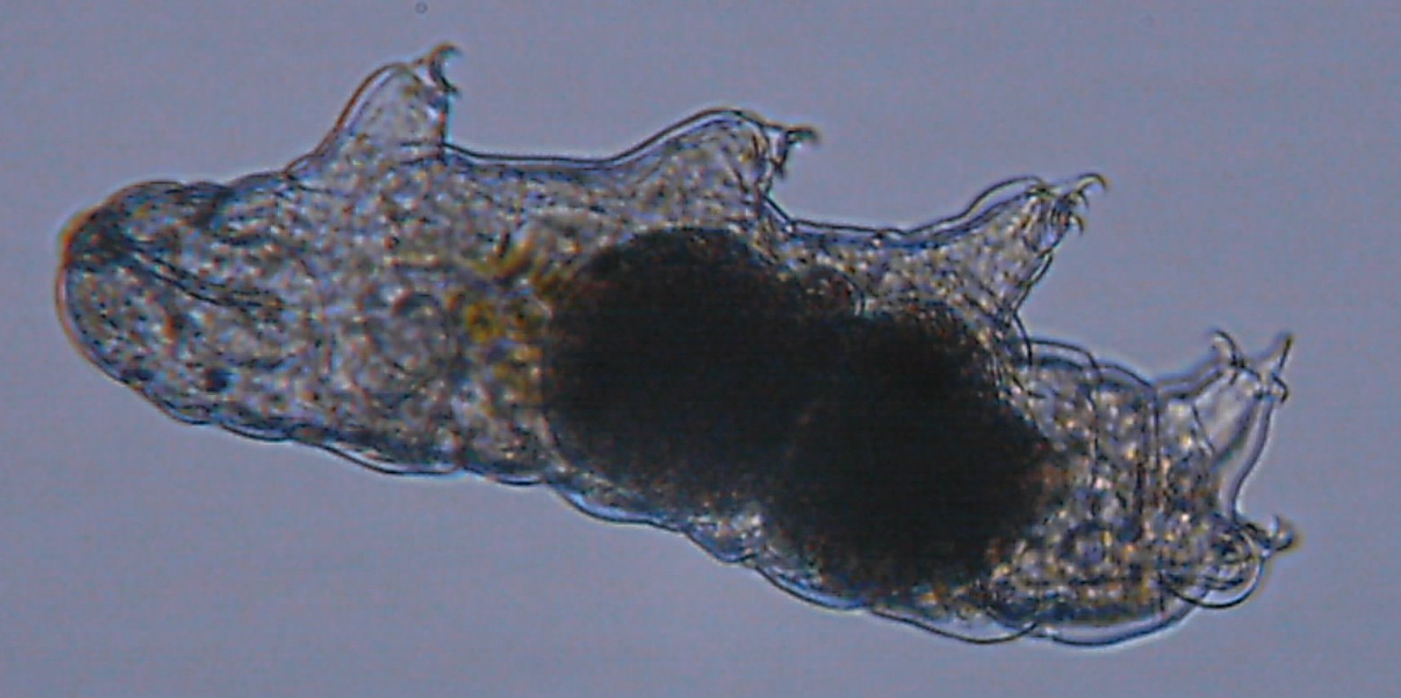 1. Тихоходки — это микроскопические животные (редко длиннее 0,1 мм), которые обитают в воде.