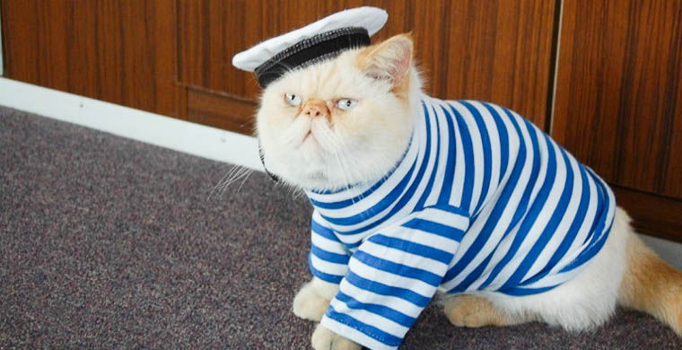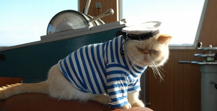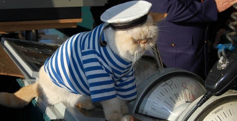 Еще одна петербургская знаменитость — кот по имени Матрос, обитающий на теплоходе «Николай Чернышевский». Его легко узнать по форменной одежде, будь то тельняшка c бескозыркой или парадная форма старшего помощника капитана с бейджиком. Именно так, ведь за годы работы Матрос дослужился до звания старпома. Хозяин кота — капитан теплохода Владимир Котин. По его словам, Матрос безошибочно предсказывает погоду. Как принимается суетиться, сомнений нет — скоро начнется шторм.